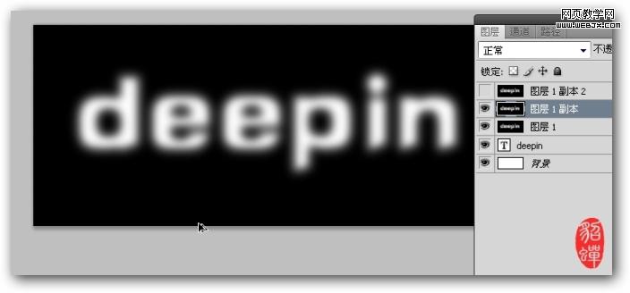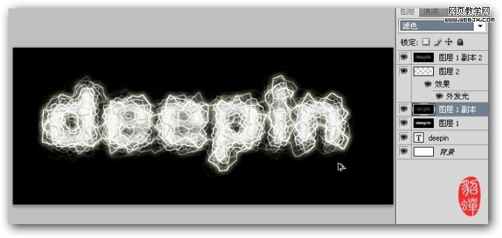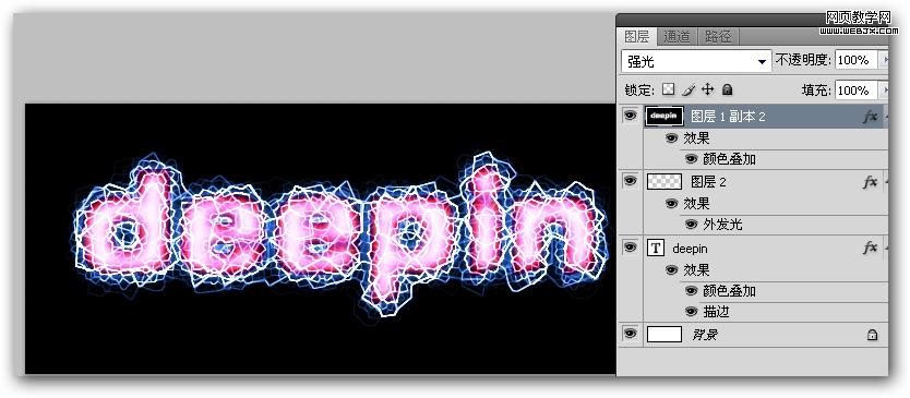 八 將圖層 1和所有圖層1副本圖層合并.把圖層2的混合模式均設置為強光,再把文字顏色調為紅色。得到最終效果