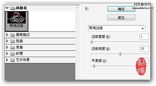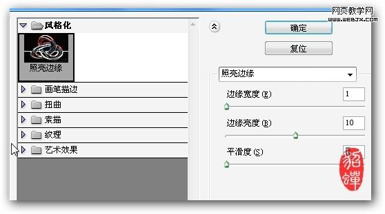 四 再執行濾鏡-風格化-照亮邊緣命令