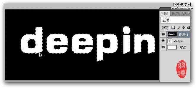 二 再新建圖層1填充為黑色,填充完后載入文字圖層選區,然后在圖層1上填充為白色.
