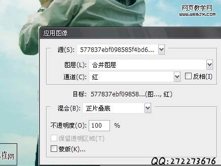 2、蓋印圖層,對紅色通道執行:圖像 > 應用圖像,參數和效果如下: