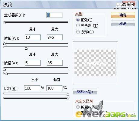 4、執(zhí)行【濾鏡—扭曲—波紋】命令,參數(shù)設(shè)置如下圖所示。