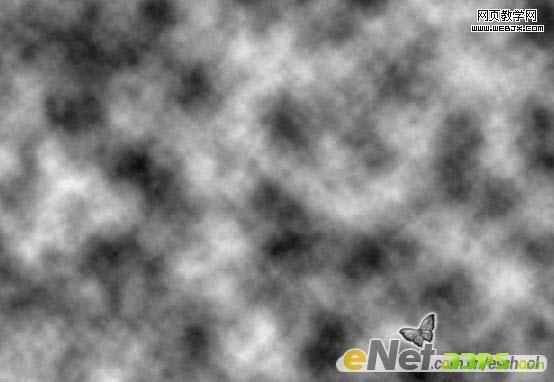 7、在所有圖層的上面新建一層,命名為【云】。確認(rèn)前景色為白色,背景色為黑色,執(zhí)行【濾鏡—渲染—云彩】命令,效果如下圖所示。