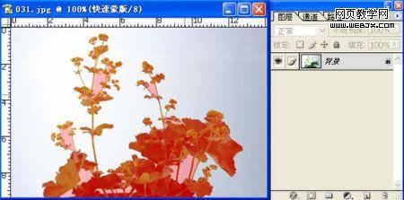 在默認(rèn)狀態(tài)下,ps以50%透明的紅色遮罩住選區(qū)外的區(qū)域。并且快速蒙板可以作用到背景層上。