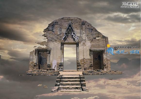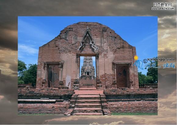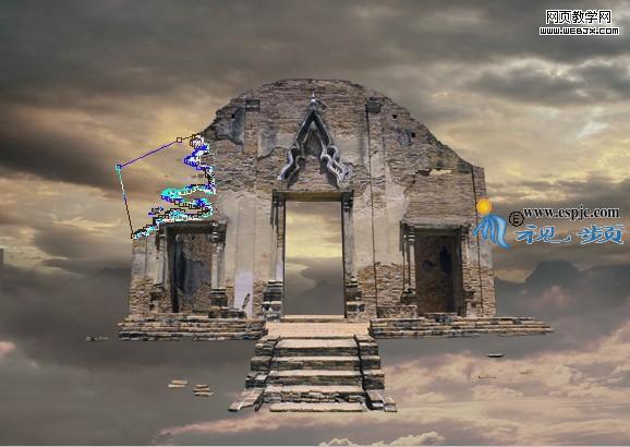 15、打開“素材5”,托至制作的文件中,得到“圖層5”。結合自由變換控制框調整圖像大小及位置,得到如圖29所示效果。按照第2步方法為此圖層添加圖層蒙版以隱藏部分圖像,得到如圖30所示效果。設置此圖層的混合模式為“疊加”,得到效果如圖31所示。