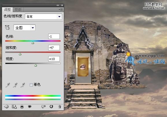 18、按照第3步的操作方法,對素材7圖形進行“色相/飽和度”及“曲線”調整分別設置參數如圖36和圖37所示,得到如圖38所示效果。