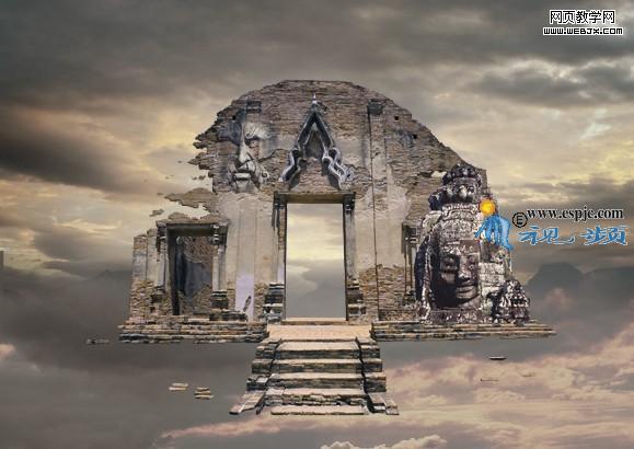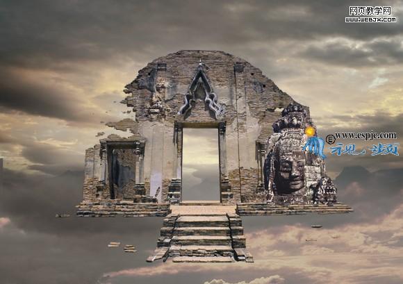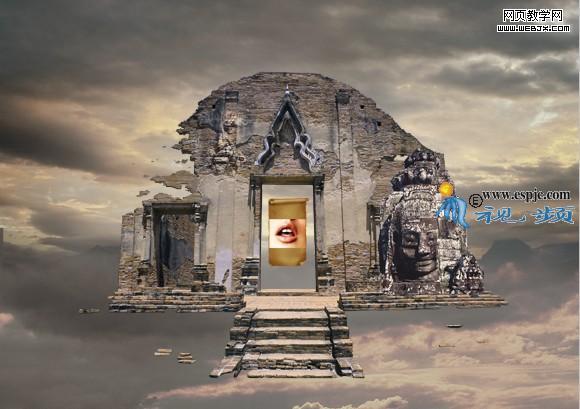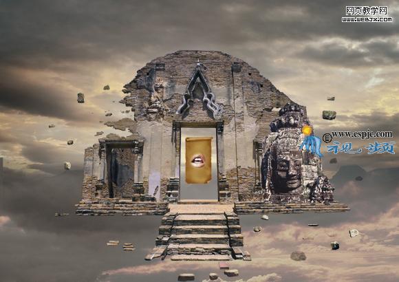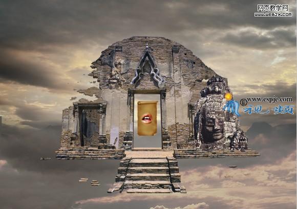 12、選擇“曲線2”,打開“素材4”如圖21所示。用移動工具拖到文件中,得到圖層4.結合自由變換控制框調整圖像大小及位置,效果如圖22所示。按照第6步的方法使用鋼筆工具將佛的頭部勾畫出來,轉換成選取,添加圖層蒙版得到如圖23所示。