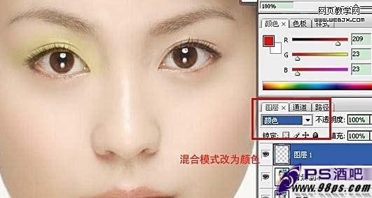 四,圖層混合模式改為“顏色”,另一只眼睛的制作技法一樣,完成最終效果。