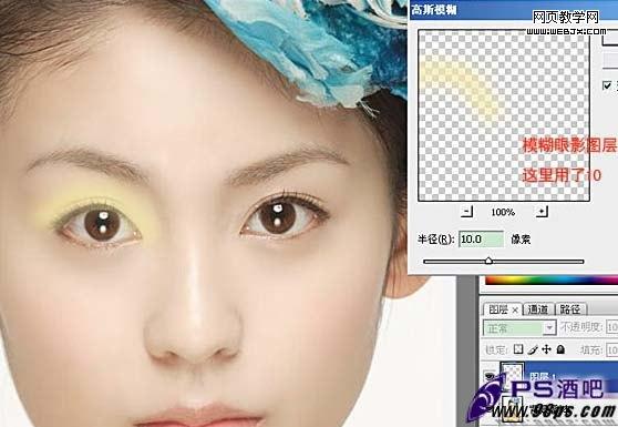 三,執行:濾鏡 > 模糊 > 高斯模糊,設置值為10。