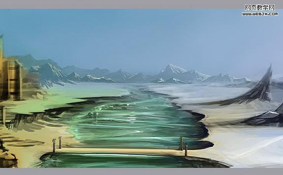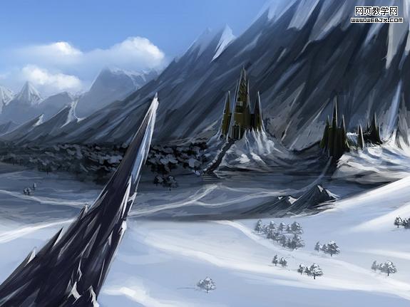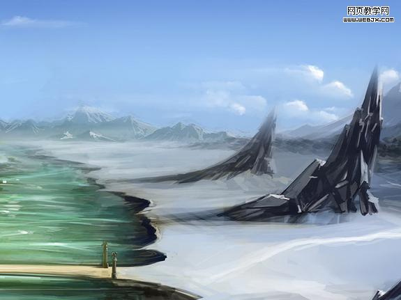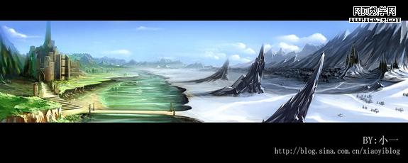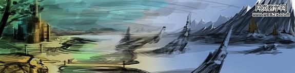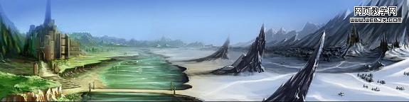ps打造夢幻場景 這次我們一起來繪制一幅魔幻場景。在正式繪畫之前我們首先要明確的就是要展現給欣賞者以什么。那么,我是先在頭腦里構思了一個冬夏共存的魔歡之地。ok,有想法了,現在我們就給他具像化。 1、打開ps,新建圖層,快速的把頭腦中的設計大體的繪制出來。友基板細膩的壓感使我能很方便、快速的將我所需要的表現出來。這一步無須將畫面放的很大,相反,要縮小些,這樣可以更準確的確定場景的大關系