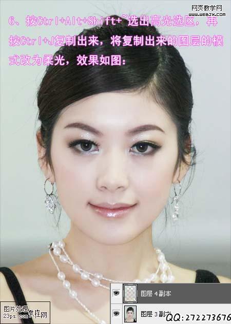 6、按ctrl+alt+shift+~ 選出高光選區,再按ctrl+j復制出來,將復制出來的圖層的模式改為柔光,效果如圖: