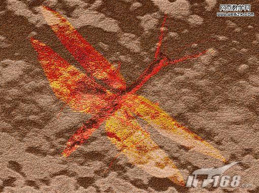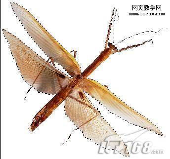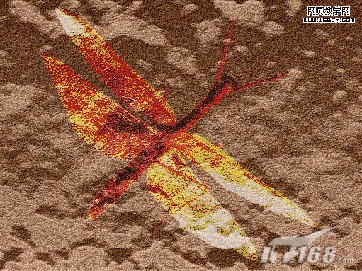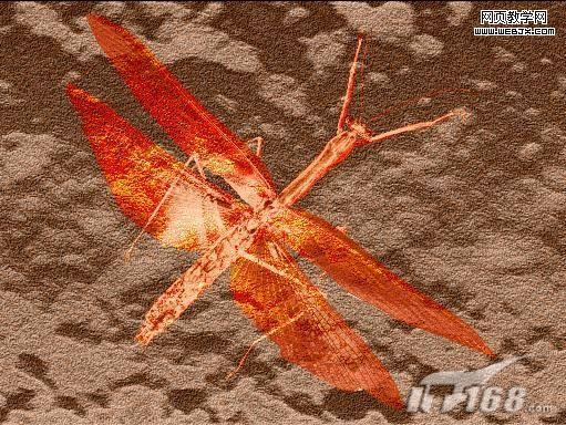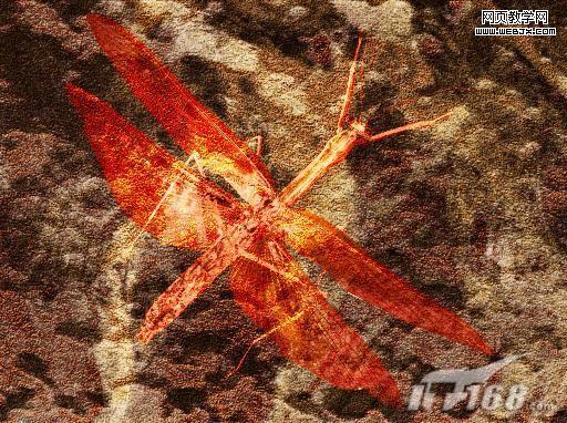 9、將昆蟲拖入文件中,復制該圖層,將復制的圖層隱藏,修改圖層透明度為50%,圖層的混合模式設置為“實色混合”,效果如圖9所示。