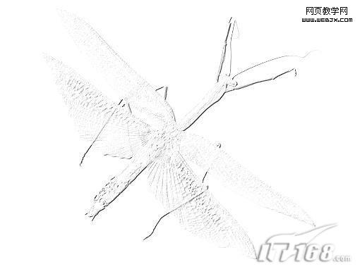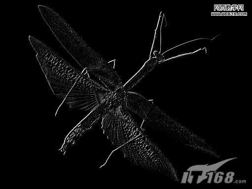 18、回到圖層面板,刪除剛才復制的昆蟲圖層,顯示所有圖層,在最頂層的下方新建圖層,回到通道面板,按住ctrl鍵單擊藍通道副本層,載入該通道選區,回到圖層面板用黑色填充選區。修改圖層的透明度為50%,圖層混合模式為“線性加深”,昆蟲的翅膀和邊緣產生立體陰影效果如圖19所示。