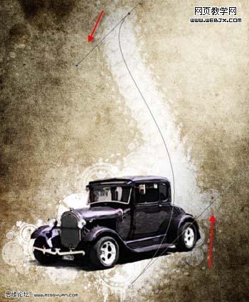 9、添加汽車圖片,使用鋼筆工具(或任何其他你喜歡的工具,但用鋼筆工具會讓你在之后的制作得益) ,畫一個工作路徑,如下圖所示: