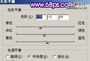 5、創建色彩平衡調整圖層,參數設置如圖7,效果如圖8。