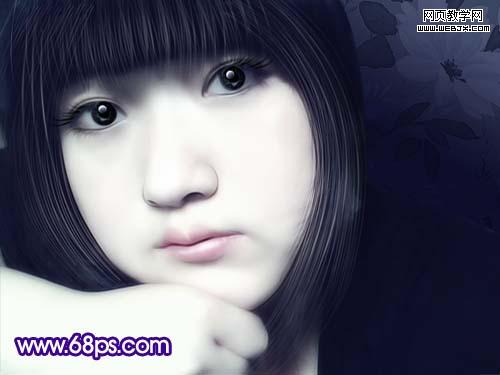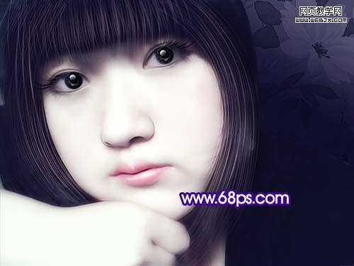 7、新建一個圖層,蓋印圖層,然后處理五官部分,適當把五官輪廓邊緣加深一點。