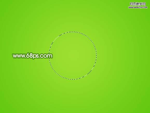 2、新建一個(gè)圖層,選擇橢圓選框工具,按住shift 鍵拉出圖3所示的正圓,按ctrl + alt + d 羽化50個(gè)像素,然后填充顏色:#f2fc6e,效果如圖4。