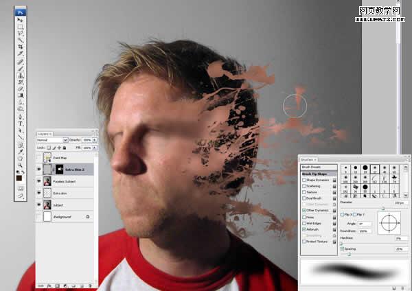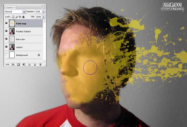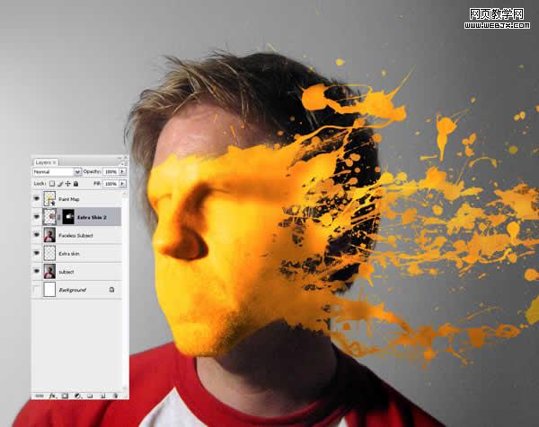 在“faceless subject”層上創建一個新層“paint backgroud”。使前景色為黑,畫一些水滴飛濺。