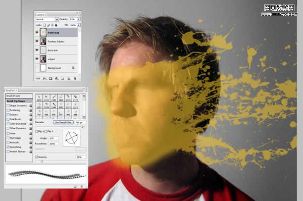 本photoshop教程,主要講解合成教程,打造臉部潑油漆特效,希望大家喜歡本教程。在這個教程中,我們將學會用ps筆刷繪制水滴潑濺的效果,然后再把它貼到一個模特的臉部輪廓.這是一種相對簡單的技術,但可以產生特別棒的藝術效果.開始吧。