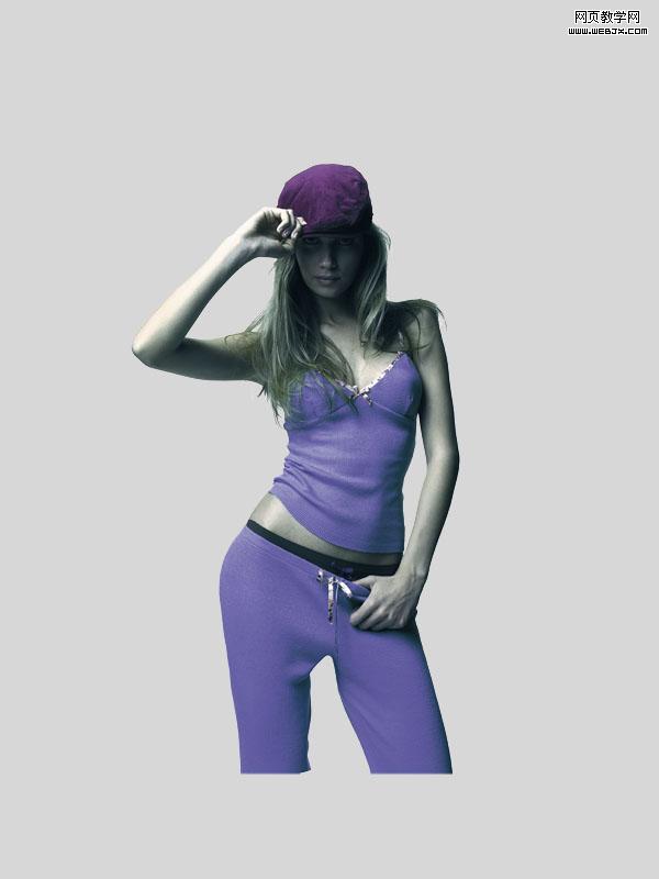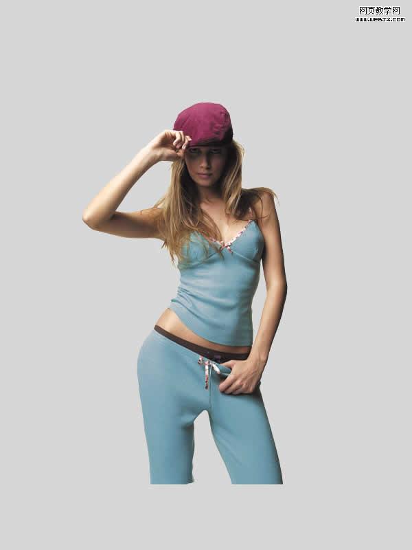 新建立一個(gè)photoshop文檔,使用一個(gè)淺灰色背景,然后把女孩圖片摳取出來(lái),放到合適的位置。