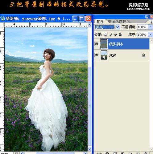 3、把背景副本圖層混合模式改為“柔光”,效果如下圖。