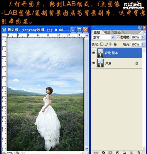 1、打開原圖素材,選擇菜單:圖像 > 模式 > lab顏色,把背景圖層復(fù)制一層,然后對(duì)副本進(jìn)行操作。