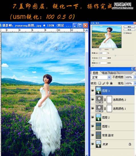 7、新建一個(gè)圖層,蓋印圖層,執(zhí)行:濾鏡 > 銳化 > usm銳化,數(shù)值:100/.5/0,確定后,完成最終效果。