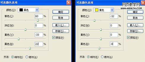 6、再創(chuàng)建可選顏色調(diào)整圖層,參數(shù)及效果如下圖。