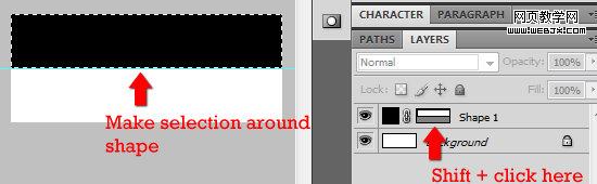 5 在圖層面版中,按住ctlr 之后點擊該矩形圖層,新建一關(guān)聯(lián)選區(qū)。