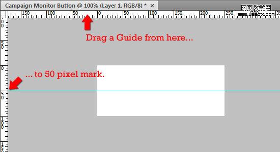 2 在畫布的垂直方向的一半的地方,拉拽一條標尺線。假如你的畫布中,沒有標尺,可按住 (ctrl + r) 調(diào)出它來。徑直從標尺中向畫布中央拉拽,就可拉拽出一條標尺線。