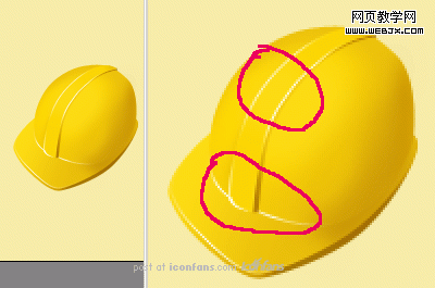 不要忘記中間的突起部分(旁邊的圖是放大以后的)。你可以把它做的盡可能大點,因為中間的尖尖能更好的幫你界定鋼盔的3d陰影。