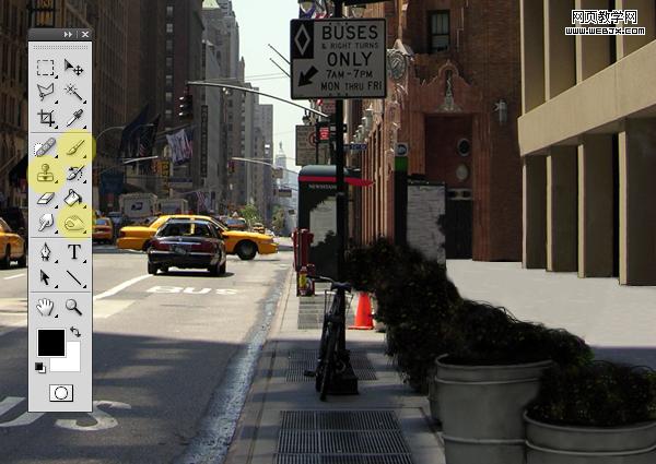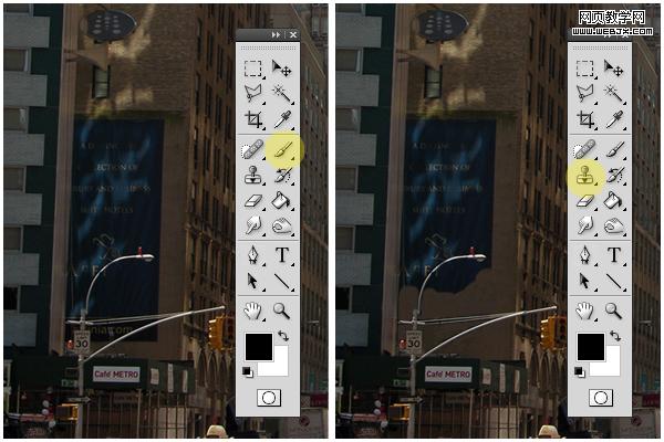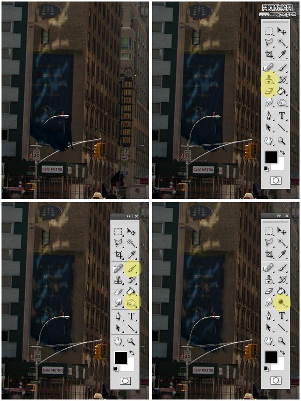 我們使用下面的工具:克隆圖章工具、橡皮擦、畫筆工具、加深和減淡工具處理圖片。