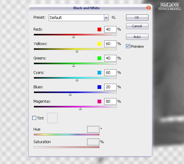 然后調整 black & white 使用默認值。
