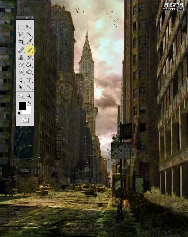 本photoshop教程利用多個素材合成一個毀滅城市的特效,效果非常不錯,關鍵是大家要準備好合成的素材發揮你的想象,其中用了photoshop一些筆刷和素材希望大家可以去網上找找。