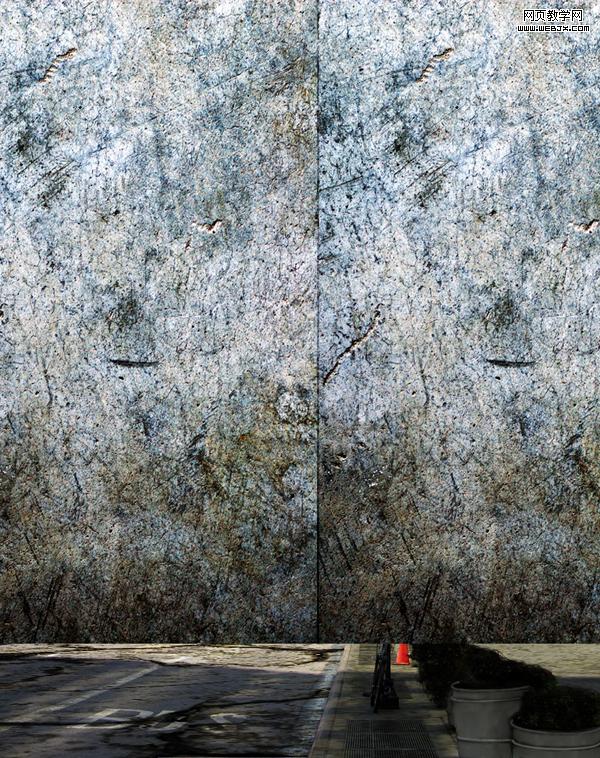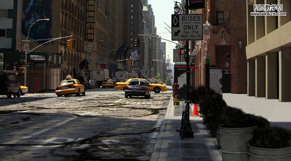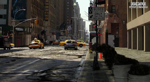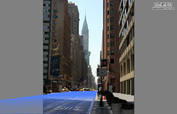 然后我們把素材3應用到建筑物上面,給街道也添加該材質,你不需要用消失點濾鏡。