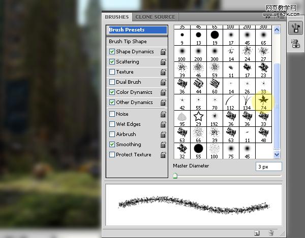 改變畫筆模式為正常黑色,再次打開畫筆面板設置如下。
