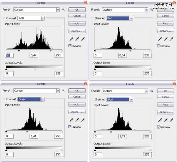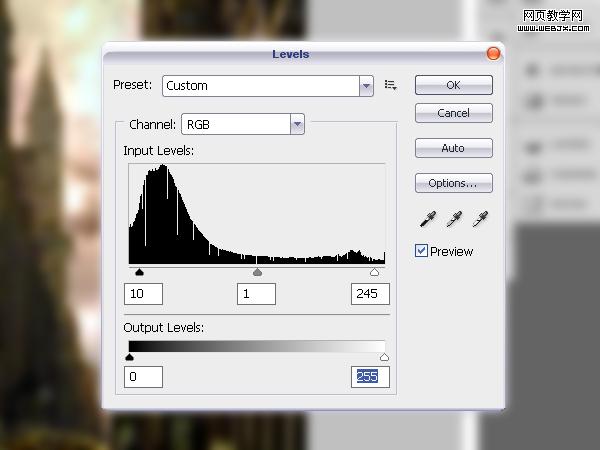 到這時我們已經得到最終效果了。合并所有圖層,然后調整色階。