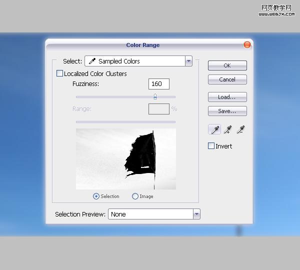 然后添加圖層蒙板,我們使用鋼筆工具或者魔術棒工具給天空制作一個選區,然后反選,填充選擇區域。達到下面效果。