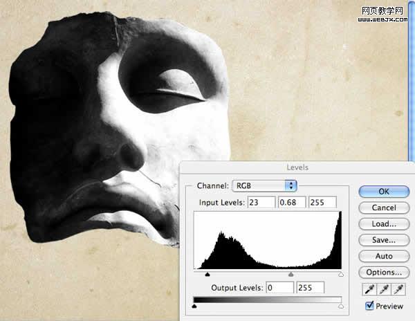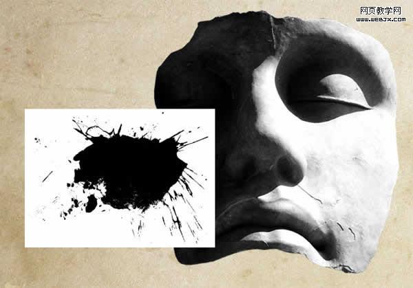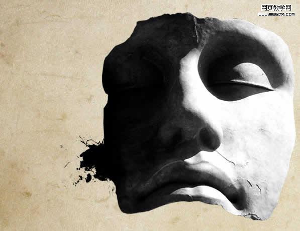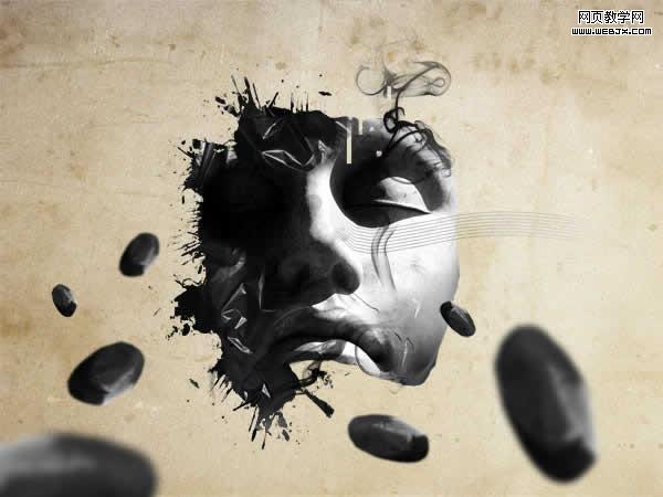 然后我們找一些石塊素材,我們用鋼筆工具或者套索工具把石頭摳出來,然后執行去色命令。復制石塊,然后調整大小,分散在臉部的周圍。