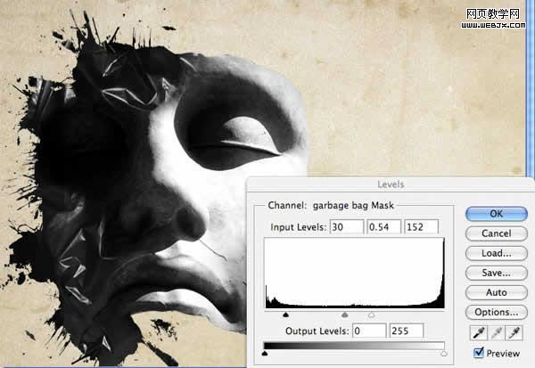 然后我們打開素材7,執行圖像-調整-灰度,去色,執行圖像-調整-反相。最后調整亮度和對比度。