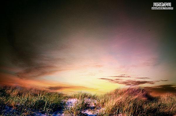 新建一個文檔,然后粘貼過一個夕陽天空圖片,命名圖層為sky。