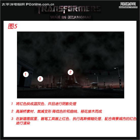 b:移花接木制作橫炮、戰(zhàn)損邊路,以及背景城市;