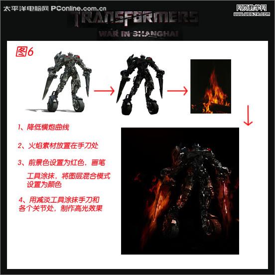 相信今年暑假檔最火爆的電影《變形金剛2》好多朋友都已經(jīng)去電影院看過了吧,緊張激烈的劇情引人入勝,開場的鋼鐵廠大戰(zhàn)中,汽車人陣營的摩托車姐妹和橫炮狙擊霸天虎陣營的偵察兵邊路的情節(jié),相信很多朋友記憶深刻,那么現(xiàn)在我們用ps來還原這一場景,并制作成壁紙!我們來看看下面的效果圖,畫面中橫炮用手刀將邊路分成2半!