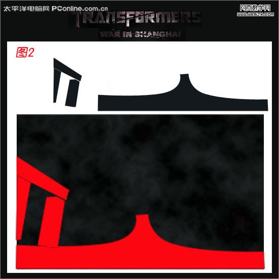 標(biāo)題的制作,選文字工具,輸入變形金剛的英文名稱,副標(biāo)題為war in shanghai,填充白色,雙擊文字層添加陰影層,陰影為紅色;在文字層上方新建一層,用顆粒殘破筆刷畫出顆粒狀的,制造陰影部分;最后用多邊形勾勒工具勾勒一下填充黑色,做劃破處理;最后發(fā)現(xiàn)畫面偏暗,將圖保存為jpg格式后,將全圖的曲線調(diào)整一下即可。