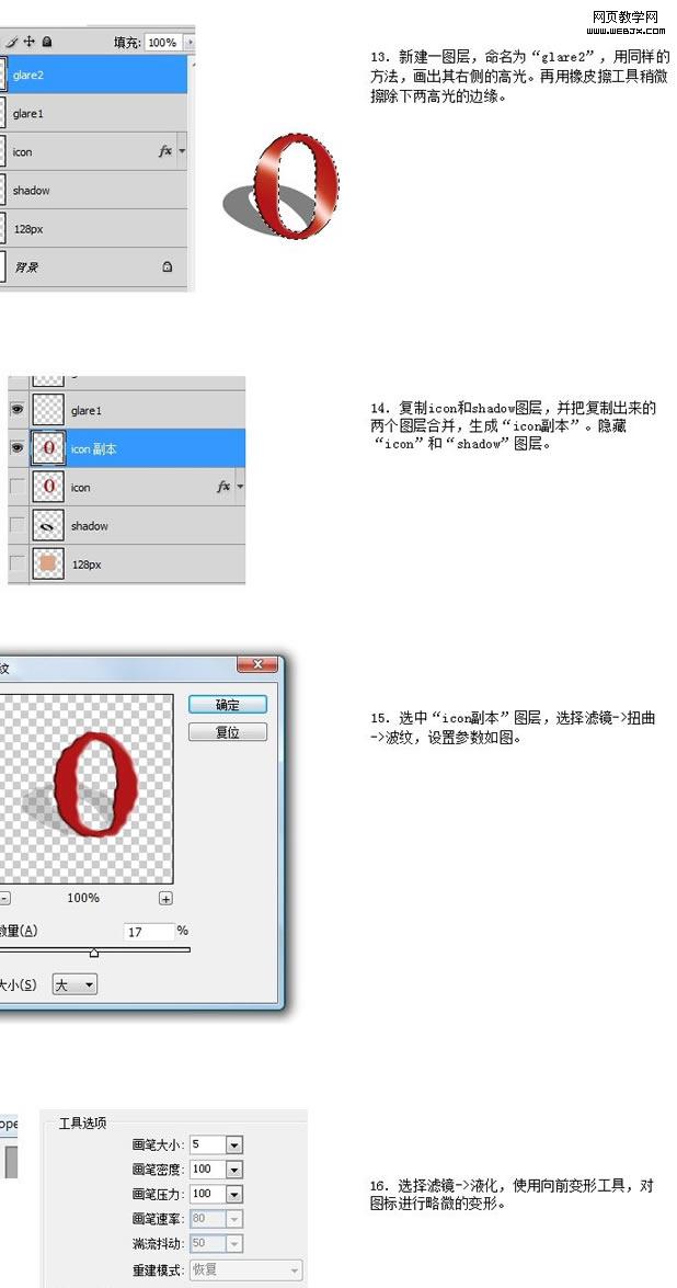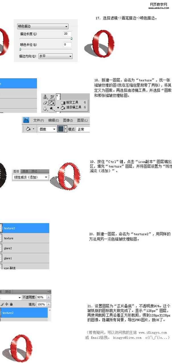 當我們把圖標做完之后,接著就用photoshop的濾鏡效果,包括波紋和噴色描邊等,為圖標添加褶皺紙張效果。
