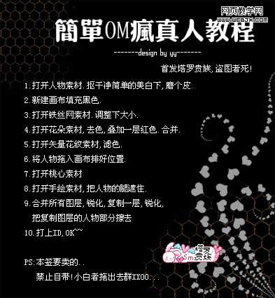 四.打開花朵素材,去色,疊加一層紅色,拼合.