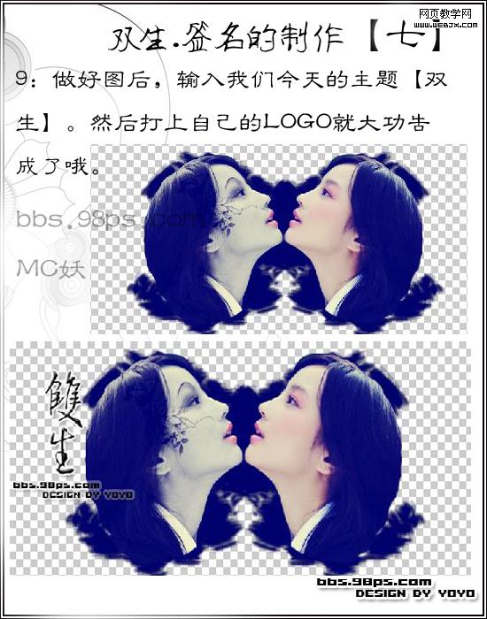 九.做好圖后,鍵入我們今日的主題:雙生花.之后打上個人的logo,就大功告成了~~