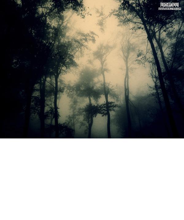 將背景圖層填充為黑色,以便森林圖片融入黑色背景中;