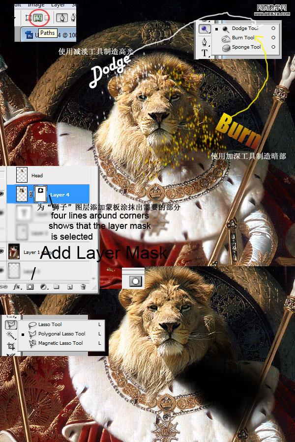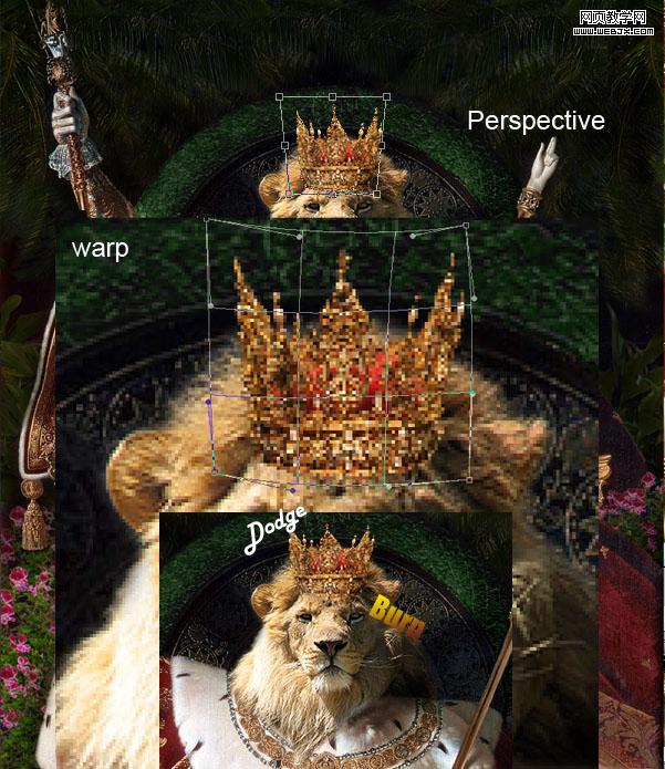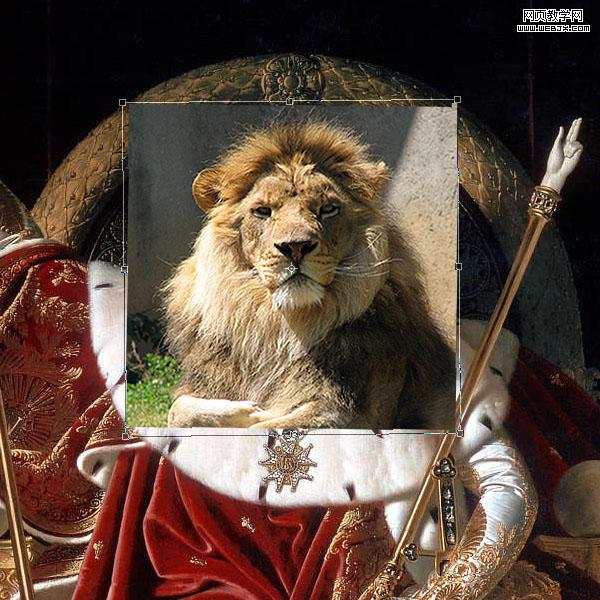 打開獅子素材圖,利用旋轉縮放等工具調試到合適位置及大小!