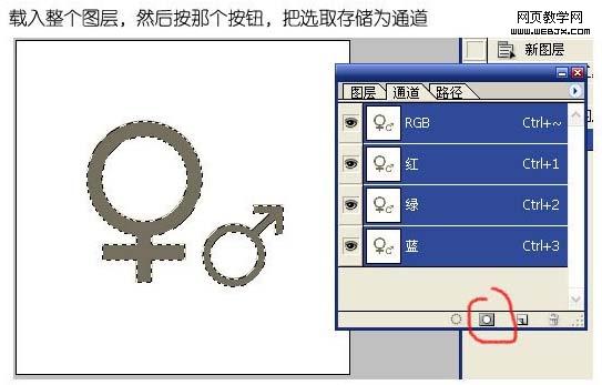 | 4、按ctrl 點圖層面板縮略圖調(diào)出選區(qū),然后點通道面板,點下面的蒙蔽按鈕保存選區(qū)。 |