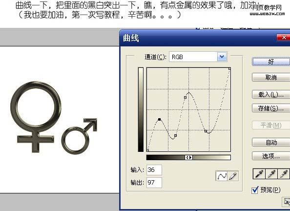 | 9、按ctrl + m 調(diào)整曲線,把里面的黑白突出一下,參數(shù)設(shè)置如下圖。 |